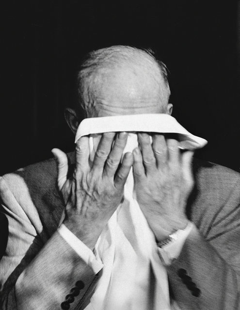 Eisenhower’s painful memories of soldiers dying as a direct result of his command decisions had caused him to break down in public at least once before. As this photograph demonstrates, in a little-remembered incident during the 1952 presidential campaign, when Eisenhower — who usually kept his emotions under lock and key — spoke to a World War II veterans’ audience about those soldiers, he was so overwhelmed by grief that he covered his face with a handkerchief.