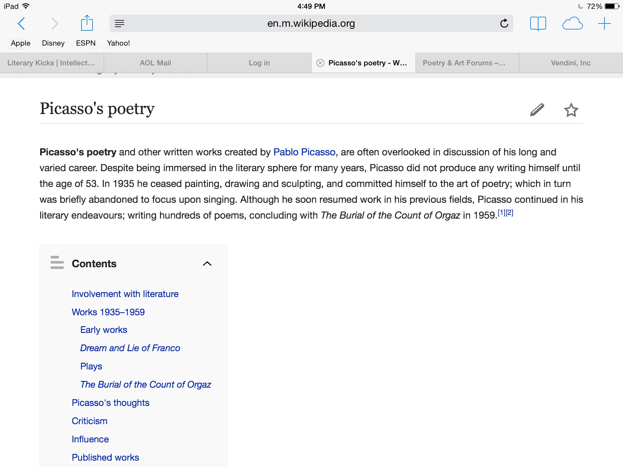 its easy to find online....i found it out recently, although i knew he preferred the company of poets.....did u see the picasso gang movie?