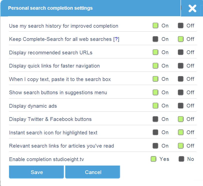 Search for "personal search completion settings" on Google.