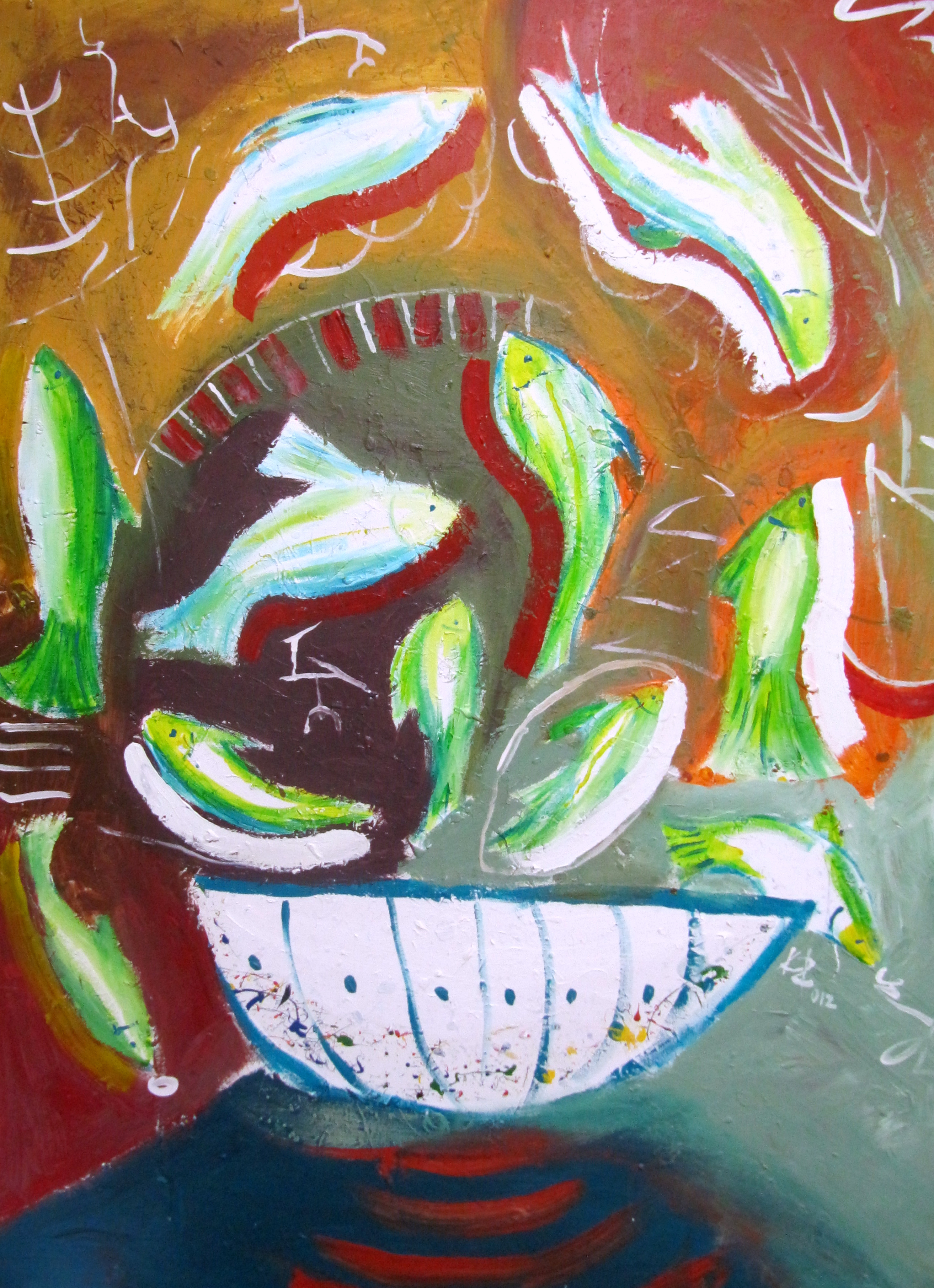 Still With Dancing Fish, Acrylic On Canvas, 16" x 24", 2012