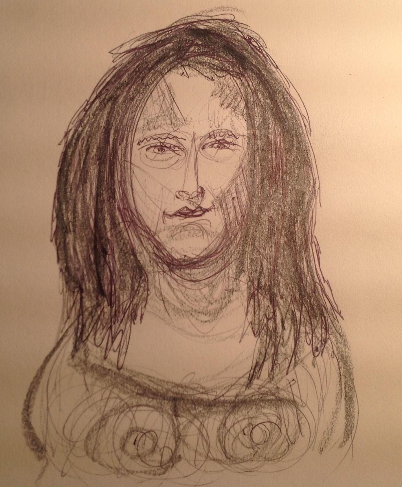 Day 3: she can scrutiny the sourroundings with her eyes & breasts beyond the mess and at the same time she keeps some kind of Mona Lisa sense of humor, I like it!!