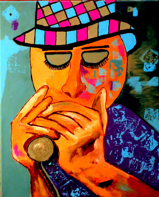 this is fabulous. The guts to wear that hat as the jam flows through the hands. And a special blueberry shirt.