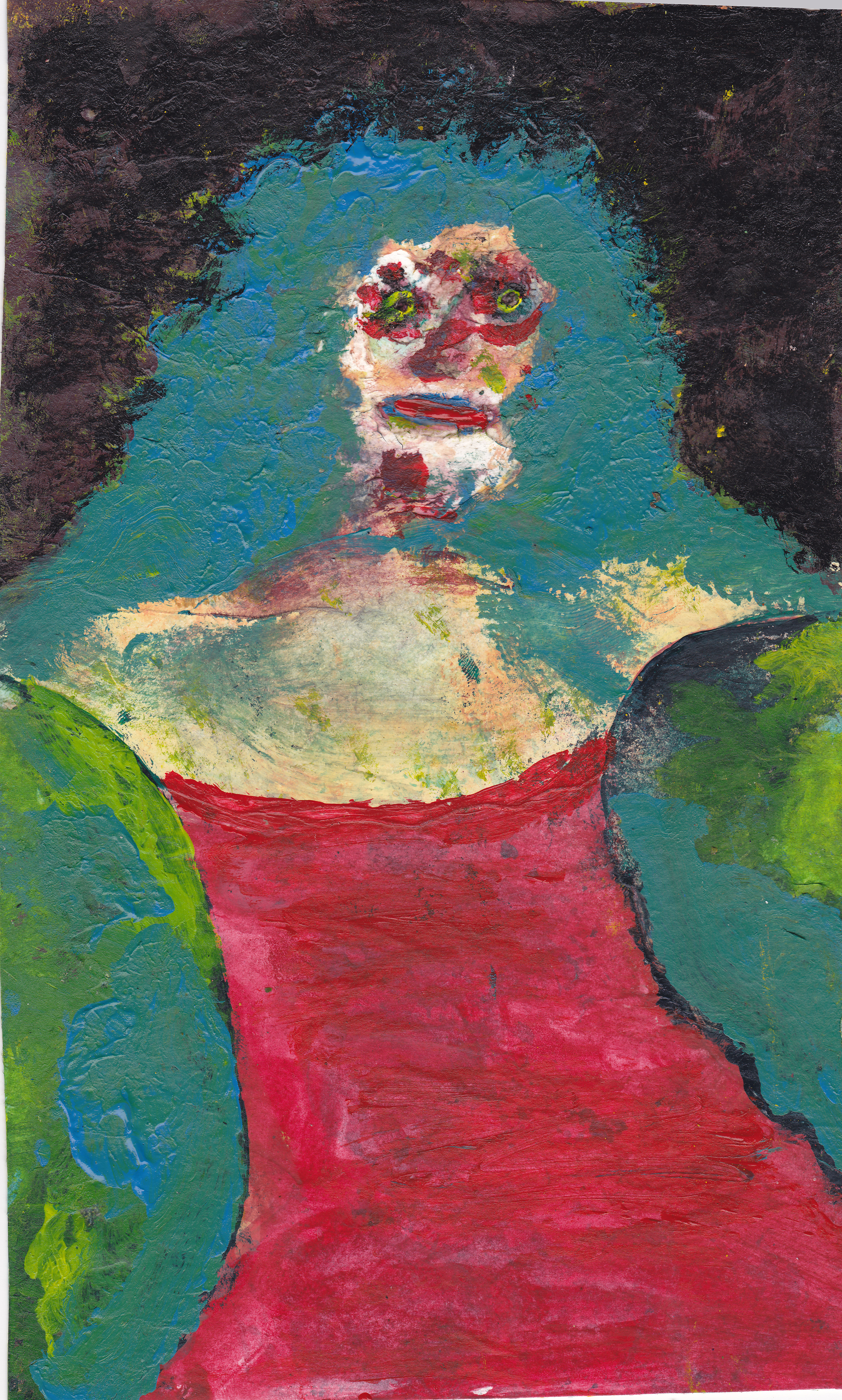thanx everyone....I guess this painting was therapy for me without me really knowing it at the time...it started out to be something entirely different, then morphed into what I now see as a painting of someone I know that continues to deny her addiction......someone that I have had many opportunities to watch her very real face morph the same way......appreciate the comments.......I never knew painting could be like keeping a journal.....
