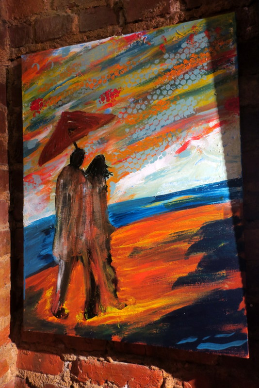 I'm trying to reconcile the image with the title - first glance I saw a Native American couple in furs or buckskins - til I noticed the umbrella/parasol - then there's the color palette, the reds & oranges suggesting heat - global warming?