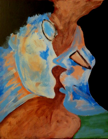 There's a hilltop artists' colony not far from here called the Andres Institute for Art, about 150 acres crisscrossed by hiking trails passing by all manner of abstract, megalithic sculptures. On my last visit there some years ago, there was one called "Before the Kiss" that your painting reminded me of....