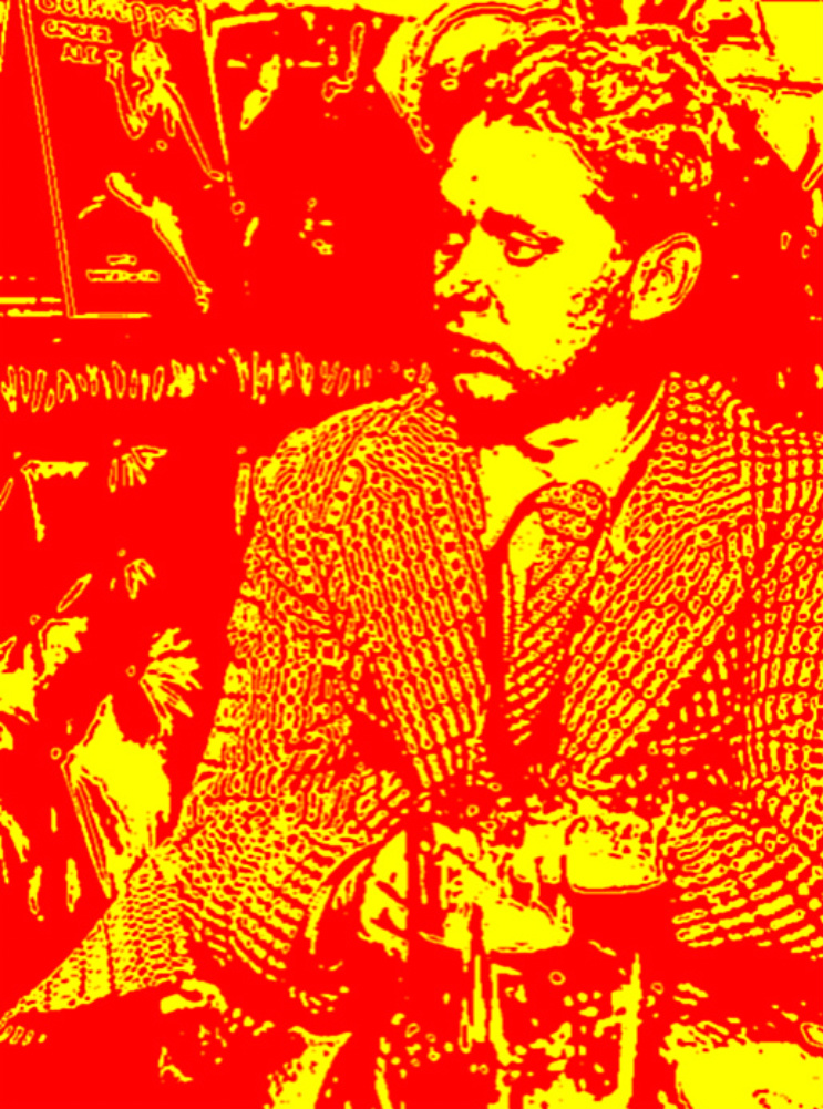 Dylan Thomas in red and yellow.