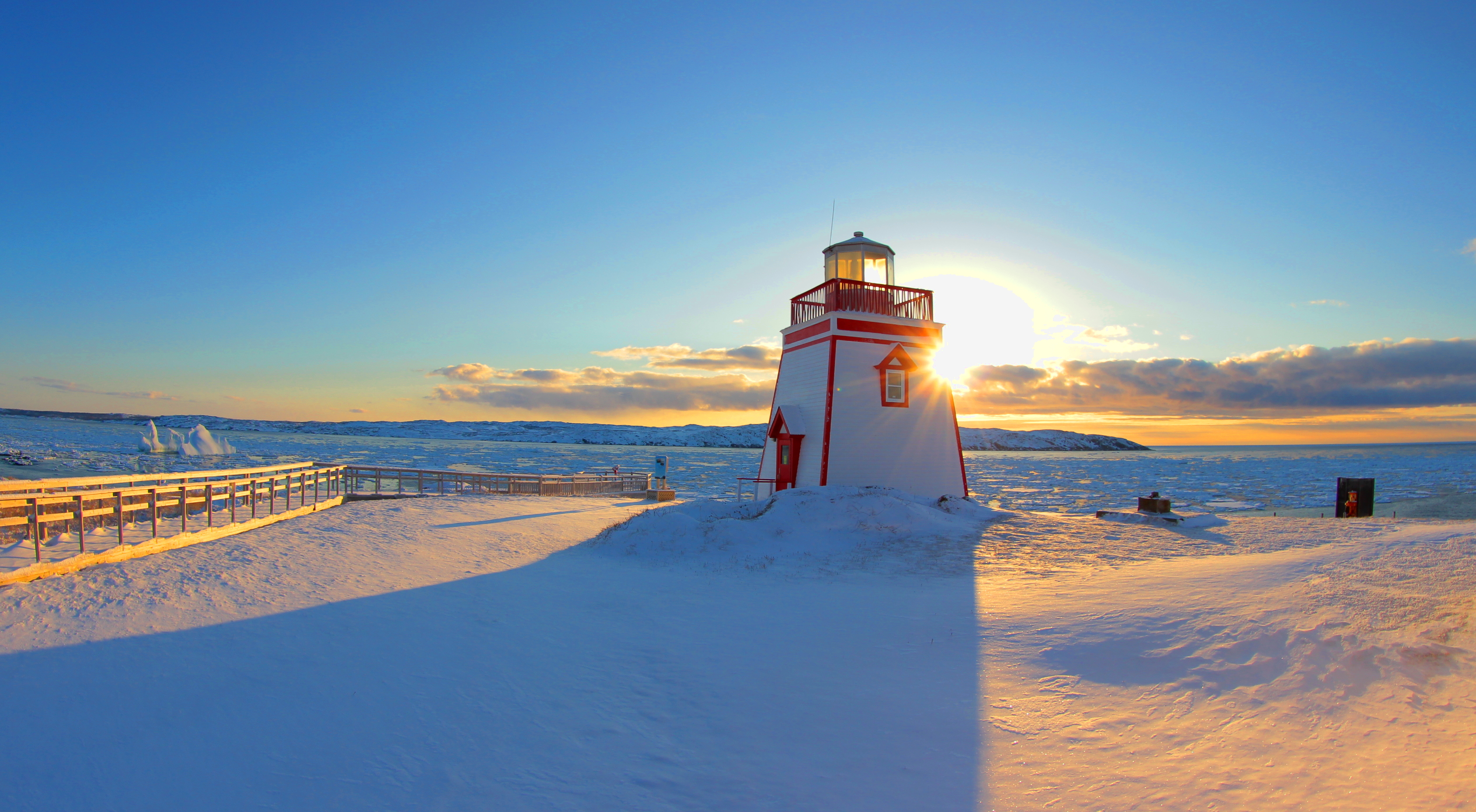 lighthouse in the arctic sunrise