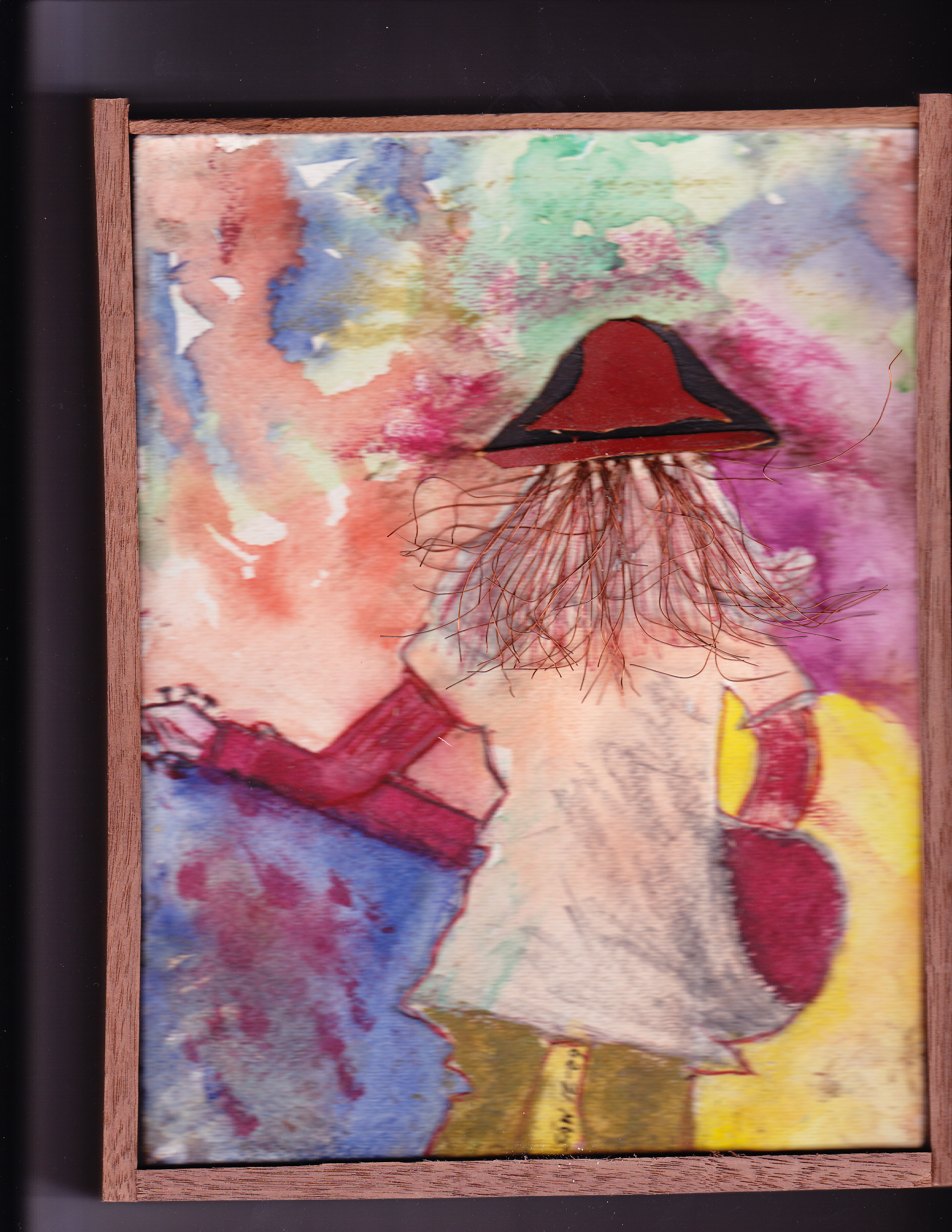 Re: on stage...watercolor, copper wire and leather