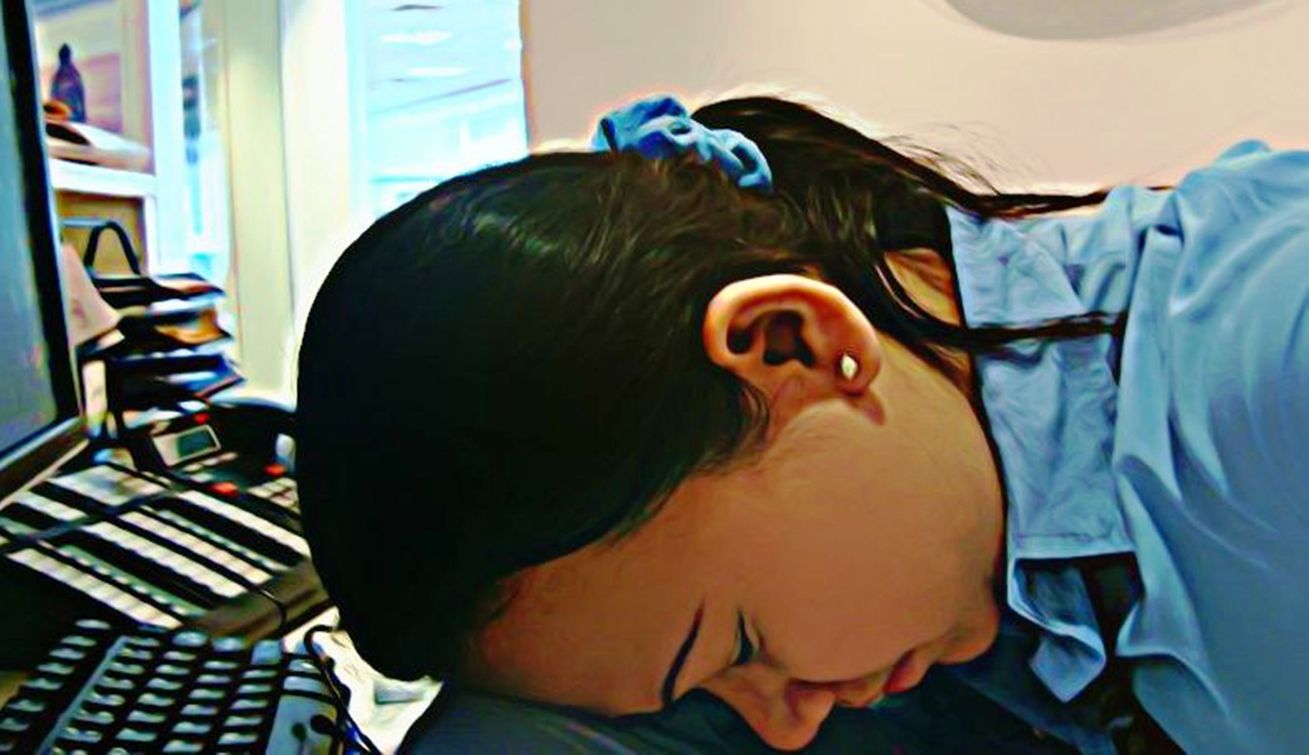 at her desk