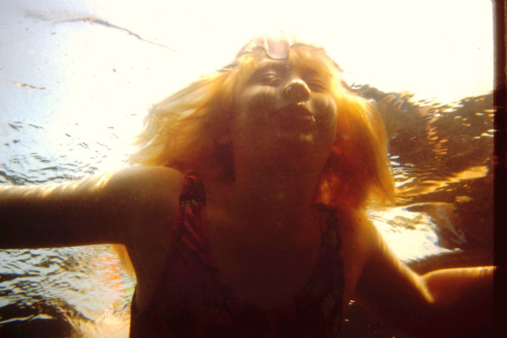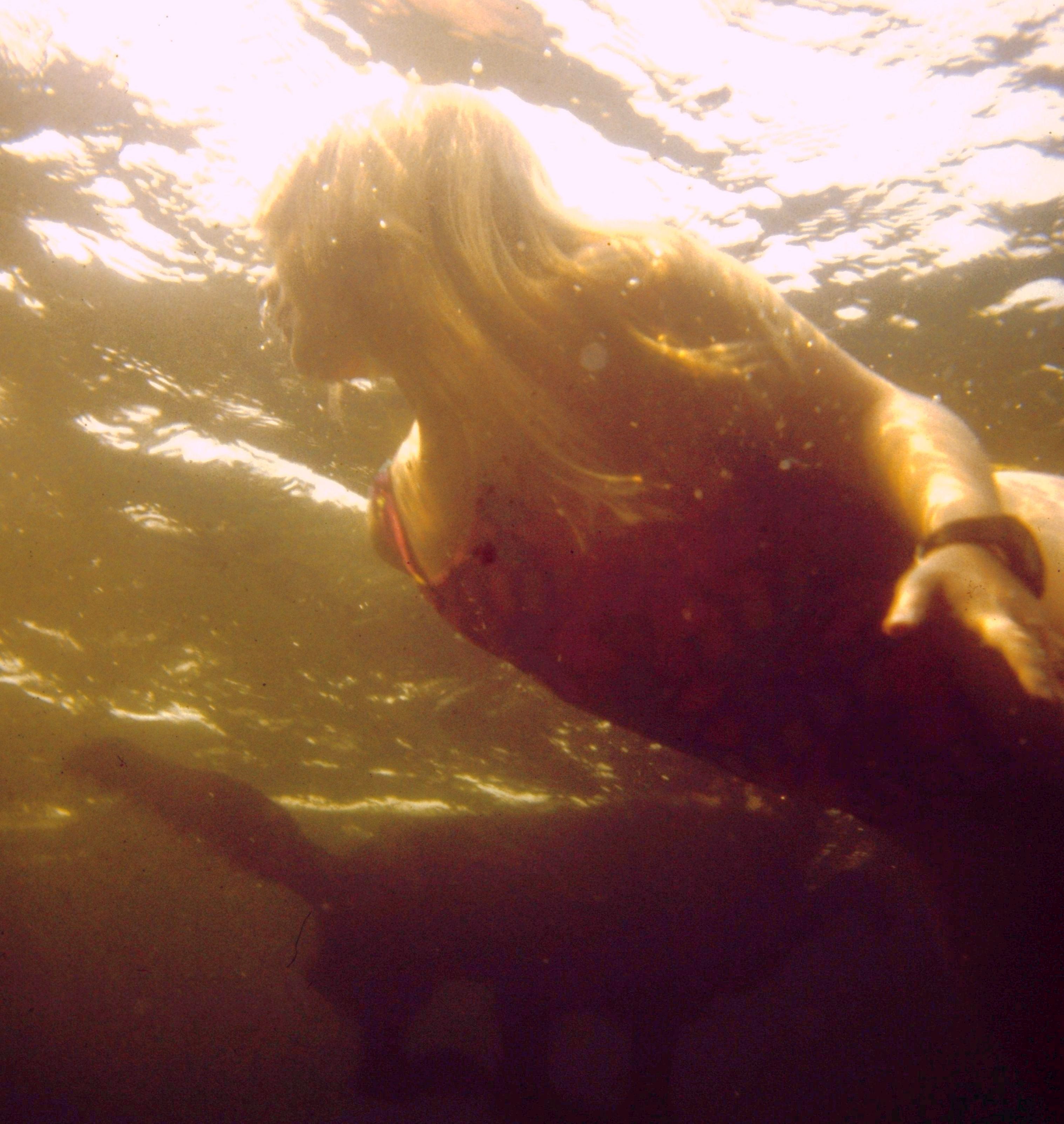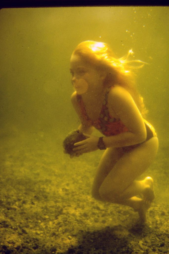 Found a few U/W pix I'd digitized at my daughter's request for a personal portfolio she was putting together. They were done on a very inexpensive scanner and are of low quality, but for now they're all I've got. They show her at age 9 swimming in Laurel Lake.