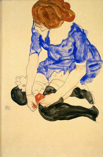 Sat still. The blue dress drawn up to her arse,