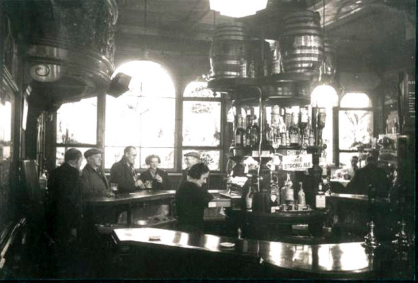 into the gloomy bar room