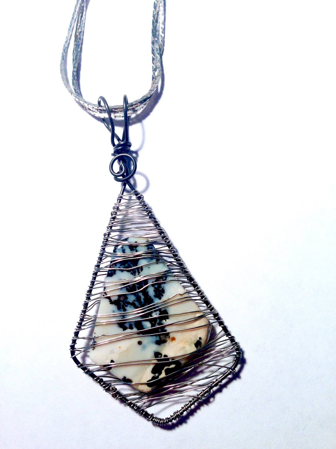 today I'm wearing this pendant I made of an agate slice floating in a wire environment