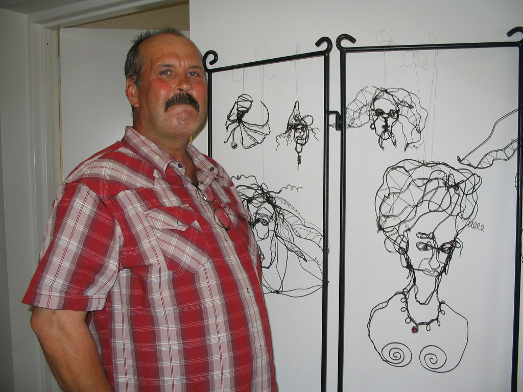 Ten years ago, 2005 ... here's Wireman's with his display of wire sculptures at our Cabaradio show in the lobby of the Arlington Independent Media TV station. Good times!
