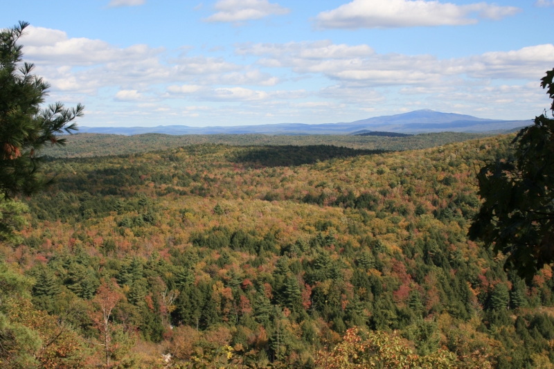 Another great spot is Pisgah SP several miles to the west of me, straddling Hinsdale, Winchester, & Chesterfield NH. 13000 acres of wilderness gone to seed... cellar holes, stone walls, old roadways, as well as the more recent footpaths. And it's got some decent hills, with some decent views, to wit: