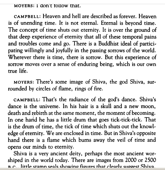Apr 17, 2011 – In Joseph Campbell's The Power of Myth, Volume 6: The Masks of .... of Shiva, the god Shiva, surrounded by circles of flame, rings of fire. ... That is the drum of time, the tick of time which shuts out the knowledge of eternity.