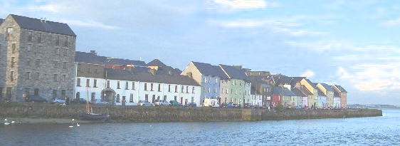 overlooking the Corrib, across the river from the Claddagh and accessed through the Spanish Arch. The Promenade (Prom) in Salthill is about two miles away to the west, by the sea and overlooking Galway Bay, the Burren and Aran Islands.
