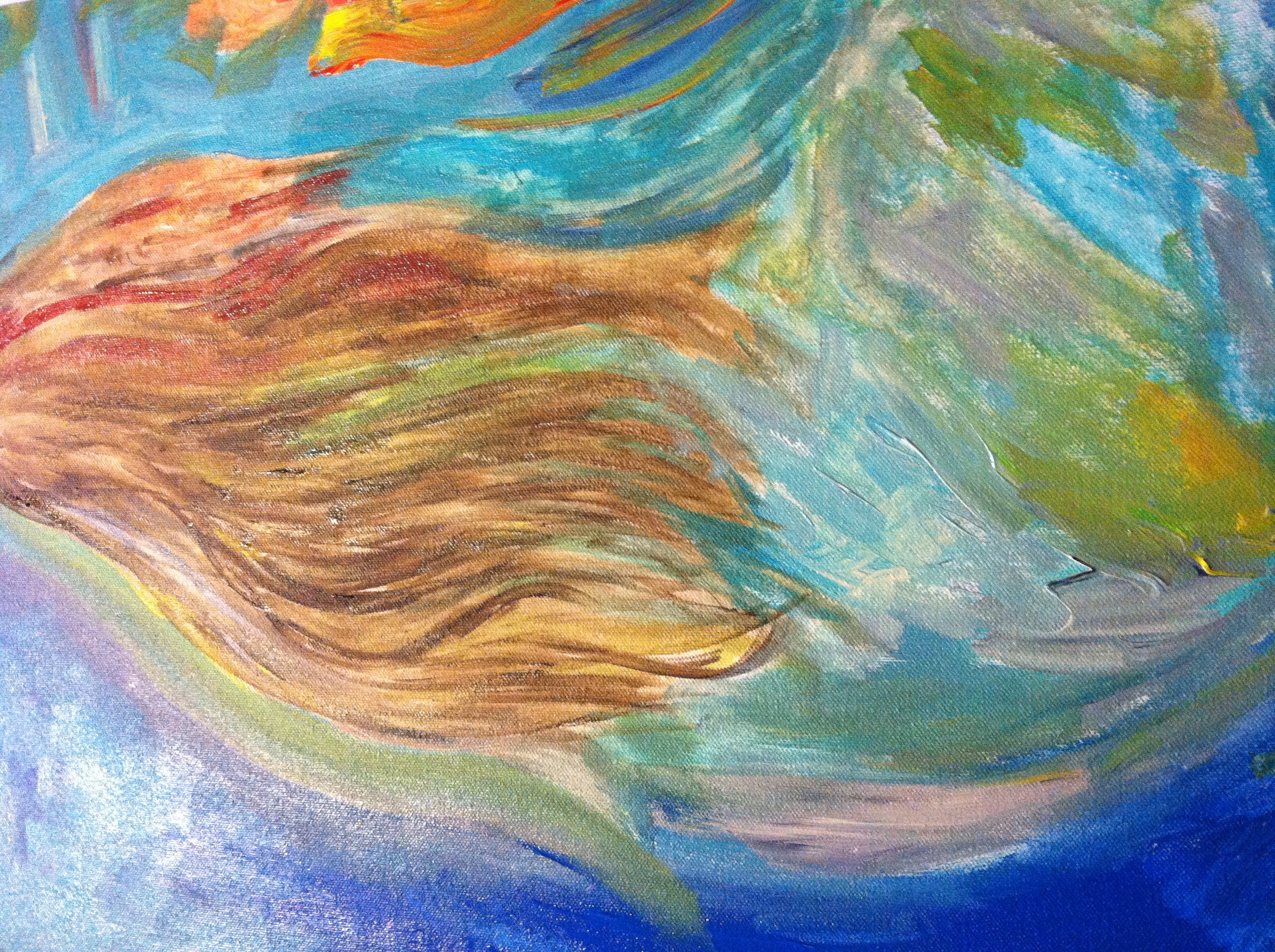 a friend gave me a cabin to paint in- next to young s river falls- my tribe- havasapi - is with the belief-=that bounty and waterfalls are synomous- i have been instructed to write and paint -religously- so i will be doing just that- eva is sold- and going to kauai-[painting] i feel it- hoping you catch some of this-