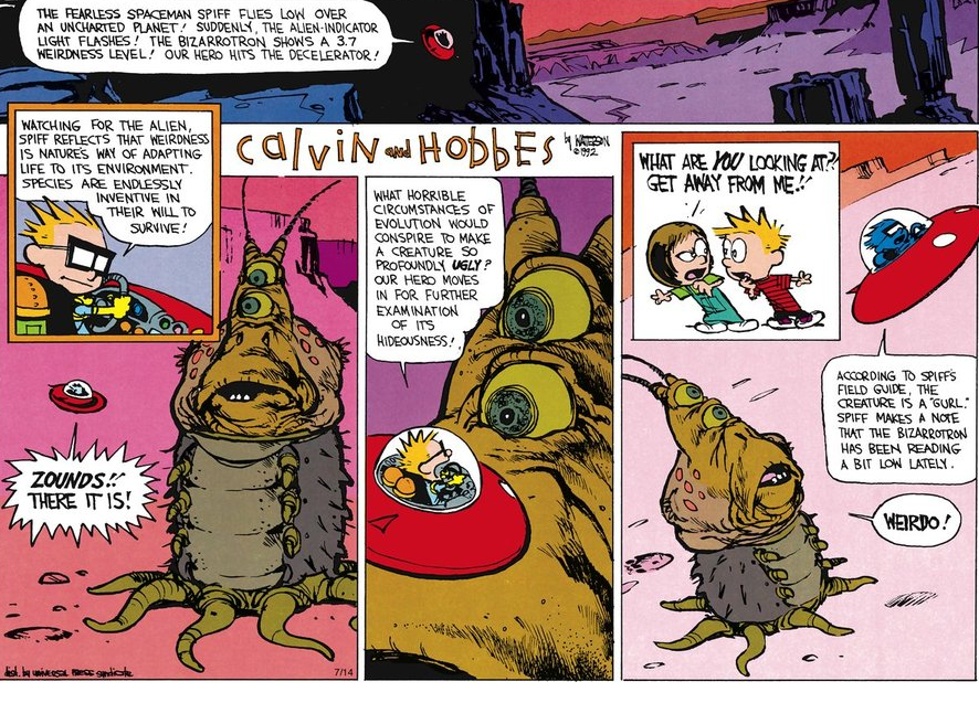 Sometimes I feel like Calvin, but in reverse, not ugly but so beautiful and strange to me.