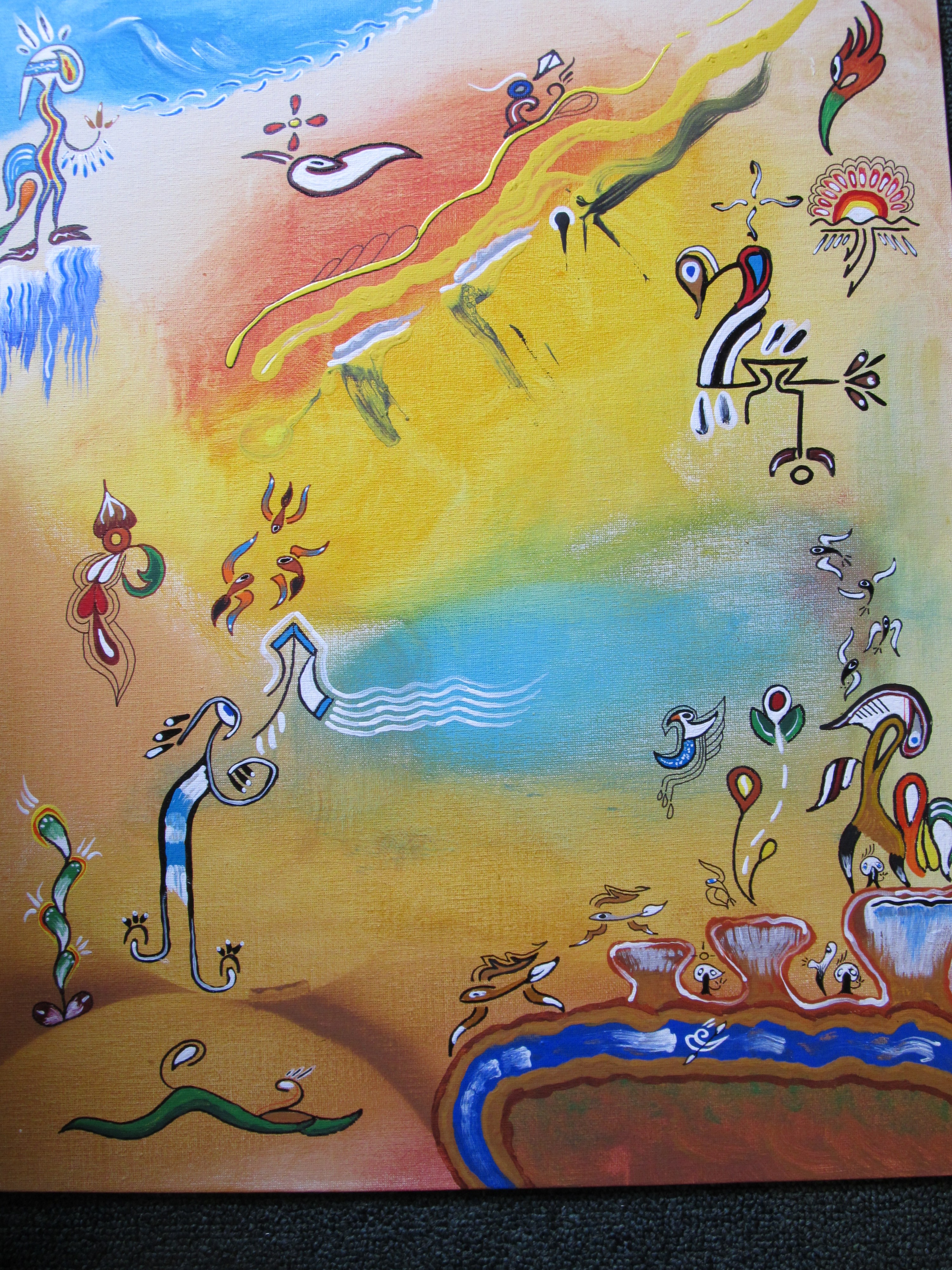 I'm not good at this. The actual painting is much much sharper than this image of it appears. It's on a canvas covered art panel that measures 16" x 20".