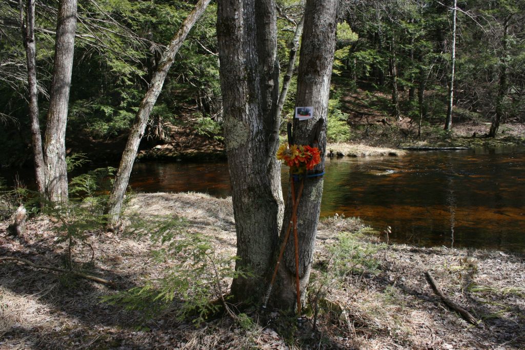 I was moved by this, and carefully returned the photo to the tree. I felt a bond with this stranger in the photograph who'd apparently loved this place enough for his tribemates to enshrine him here. I supposed that he'd fallen under the spell of the water and the woods as I had, and had regarded this as a holy place, a temple to be visited in quiet, reverential meditation - and his people were acknowledging that devotion. That made him a kindred spirit. I wanted to let them know that I, too, worshipped here - that I was a fellow parishioner who'd chanced by, and wanted to wish Bernie well.