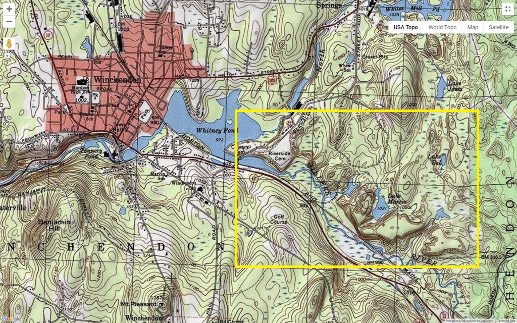 To the southeast of the village of Winchendon MA lies a cluster of steep-sided, flat-topped low hills composed of gravelly till deposited by the outwash of melting glaciers.