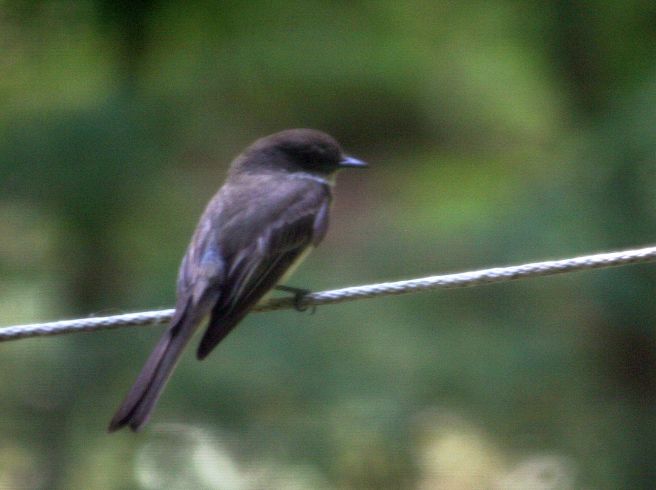 From where I'm sitting as I write this now, I can see, through the window to my left, a bit of my back yard. A short length of my clothesline crosses the view a few feet from the glass. Beyond it the ground slopes upwards into woods unbroken for at least 2 miles, without a sign of pavement for another mile beyond that. A few months ago, a pair of phoebes took up residence under the overhanging roof above that window, and have since been using the clothesline as a convenient perch. Every now and again, I'll see the line bobbing up and down as if on its own, telling me that at least one of the pair has landed on the rope just out of view. And sometimes they'll land in front of the window. I've rather enjoyed that they're comfortable sharing space with me.