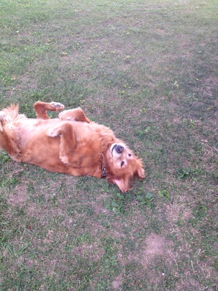 big puppy rolling in the grass