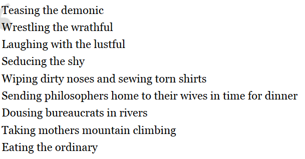 "..I may be slightly paraphrasing....I may myself be a paraphrased river locked into all those little streams in the back of my mind...